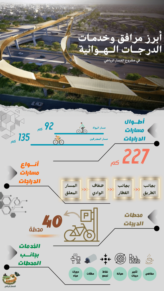 ضمن جهود المملكة لاستدامة البيئة وحمايتها، وصحة الفرد ورفاهيته، دشنت المملكة بالتعاون من الاتحاد السعودي للدراجات طواف السعودية بنسختين، وأطلقت ضمن مشروعات أنسنة المدن مشروع المسار الرياضي في الرياض، أحد أكبر المشروعات القادمة، الذي يوفر مسارات مشجرة للمشاة والدراجات .